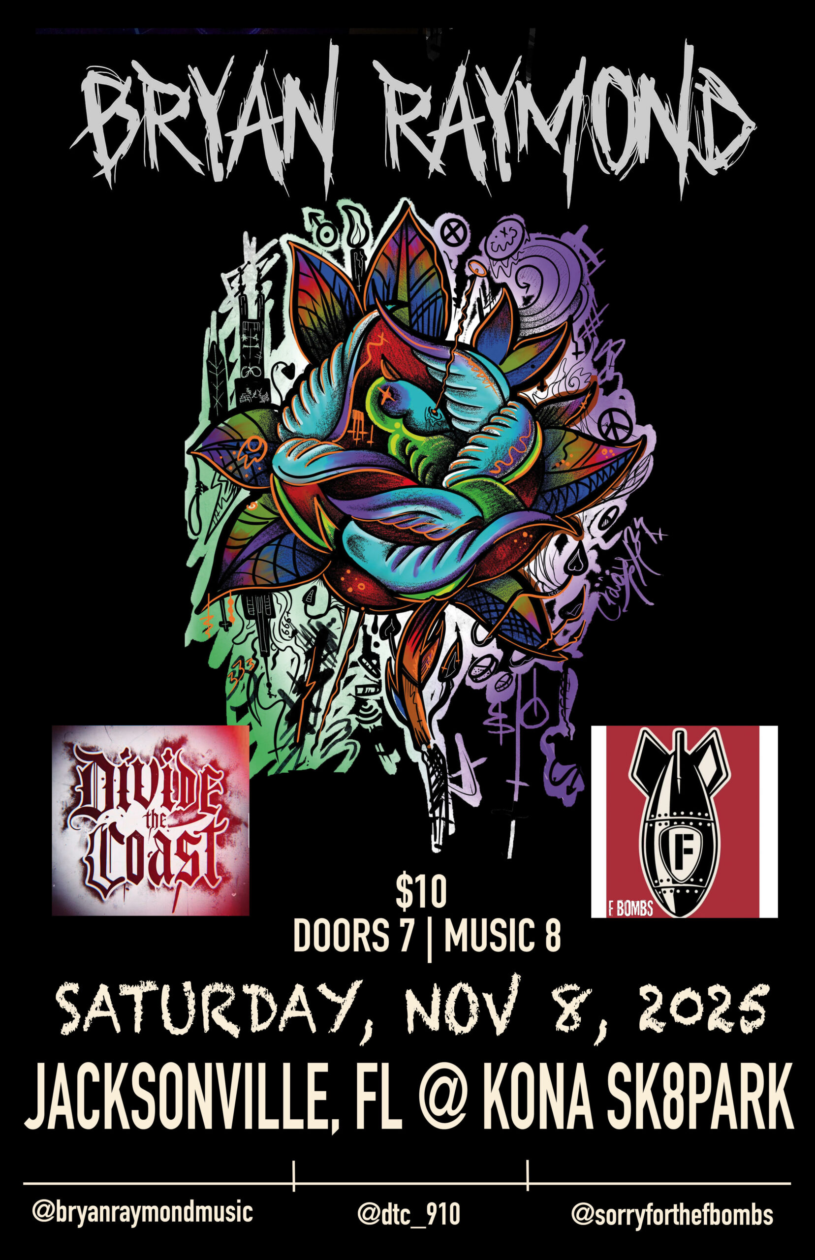 Kona Clubhouse presents Divide The Coast w/ Bryan Raymond, and F-Bombs, doors at 7 pm, $10, all ages, beer and wine for adults