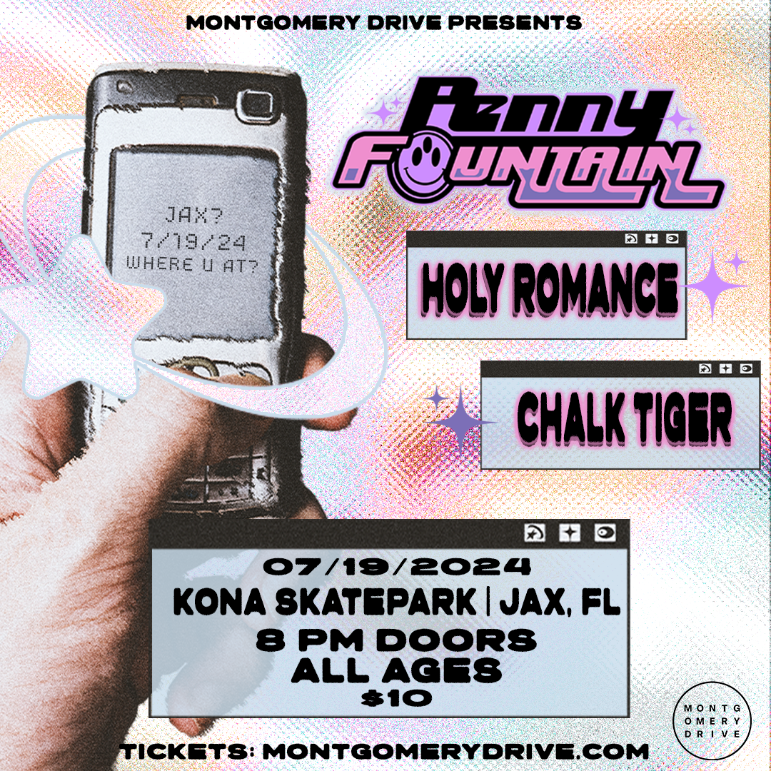 Kona Clubhouse 8739 Kona Ave, Jacksonville, FL, United StatesKona presents punk bands Penny Fountain, Holy Romance, and Chalk Tiger plus poetry readings by Daryl Gussin, James Normand, and Walker Rose