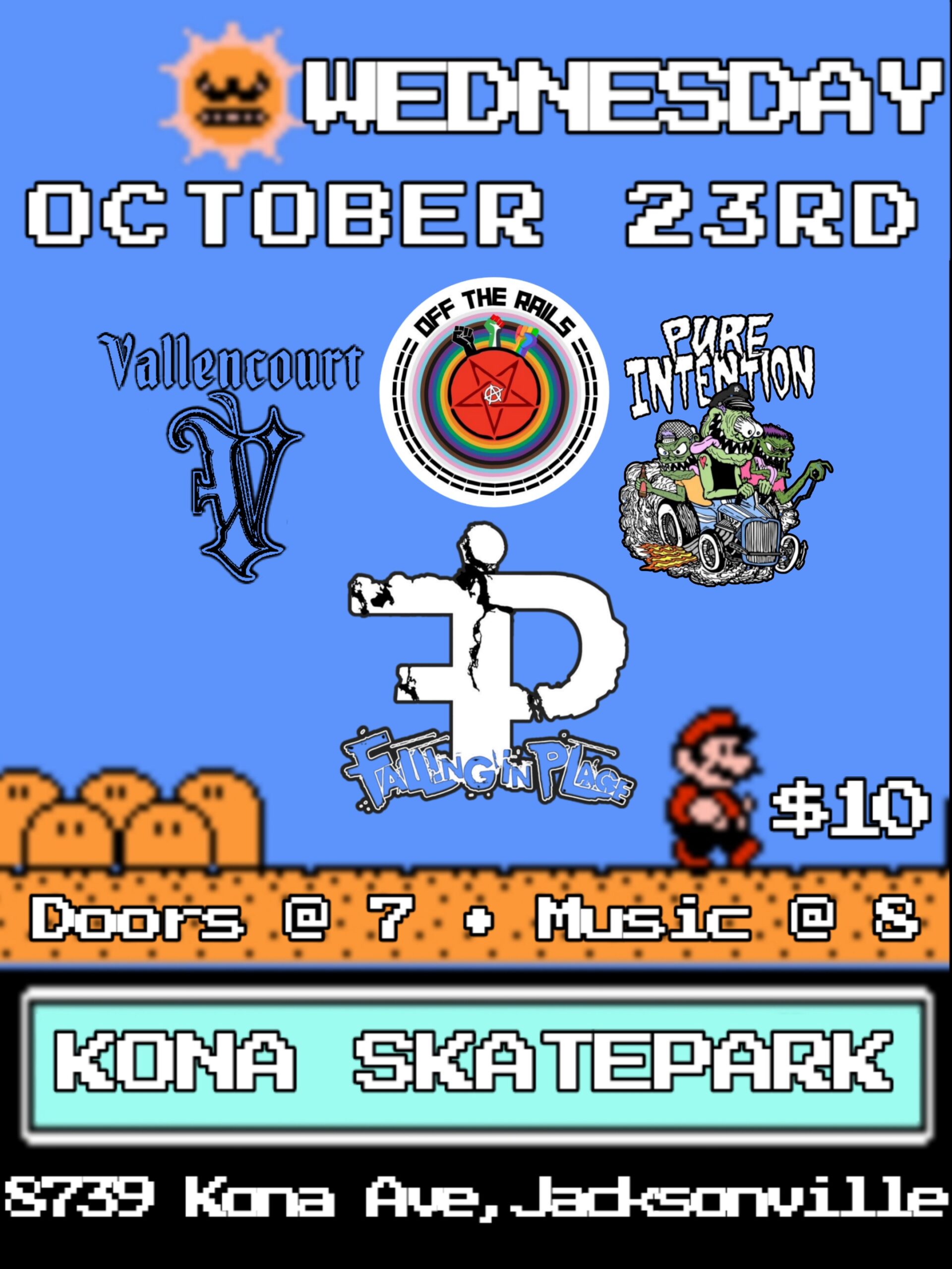 Kona Clubhouse 8739 Kona Ave, Jacksonville, FL, United StatesWednesday night Kona Clubhouse presents Off The Rails, Pure Intension, Vallencourt, Falling In Place, all ages, $10
