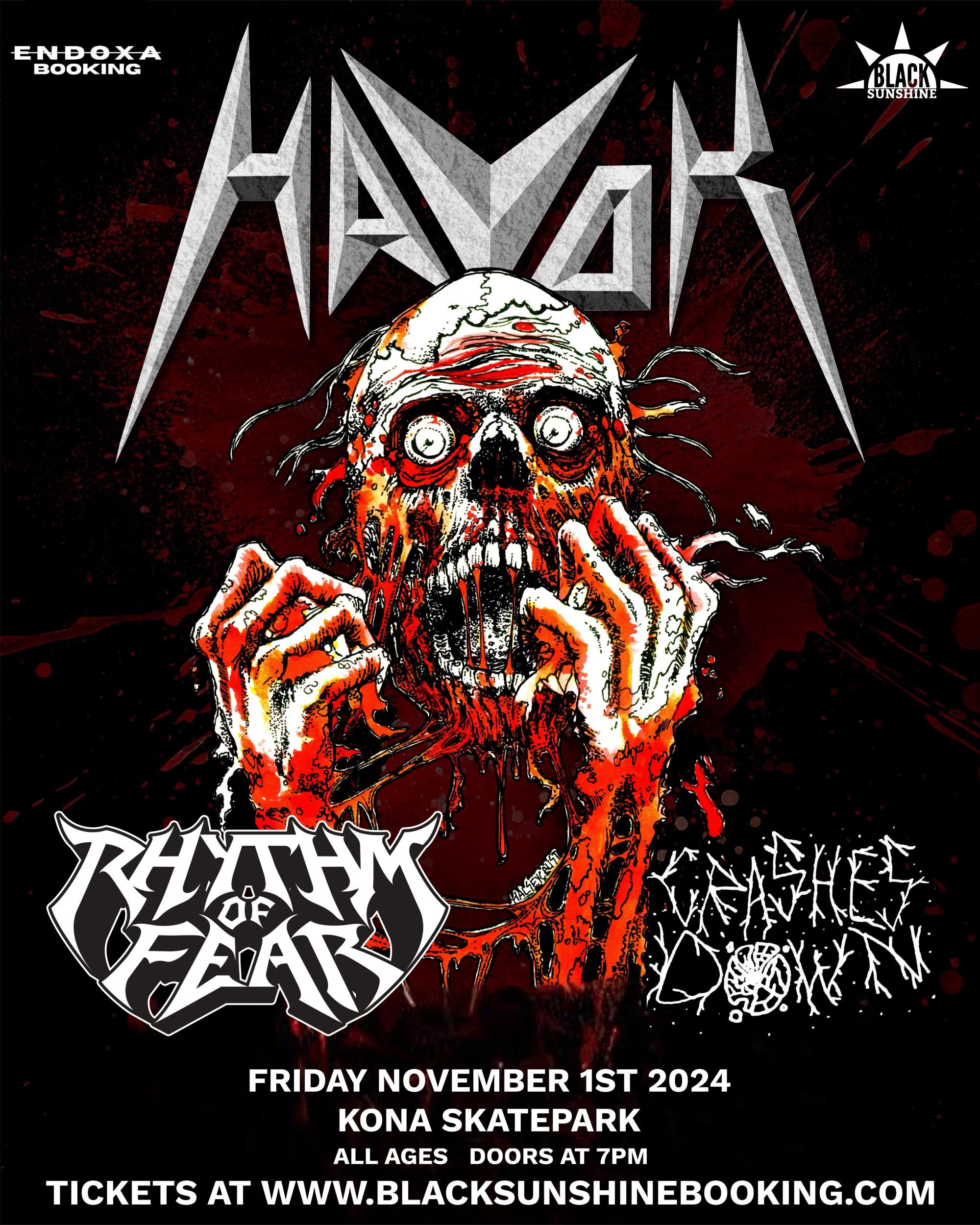 Kona Clubhouse 8739 Kona Ave, Jacksonville, FL, United StatesKona Clubhouse presents Havok, Rhythm of Fear, and Crashes Down, $20 all ages, doors at 6pm, beer and wine for adults