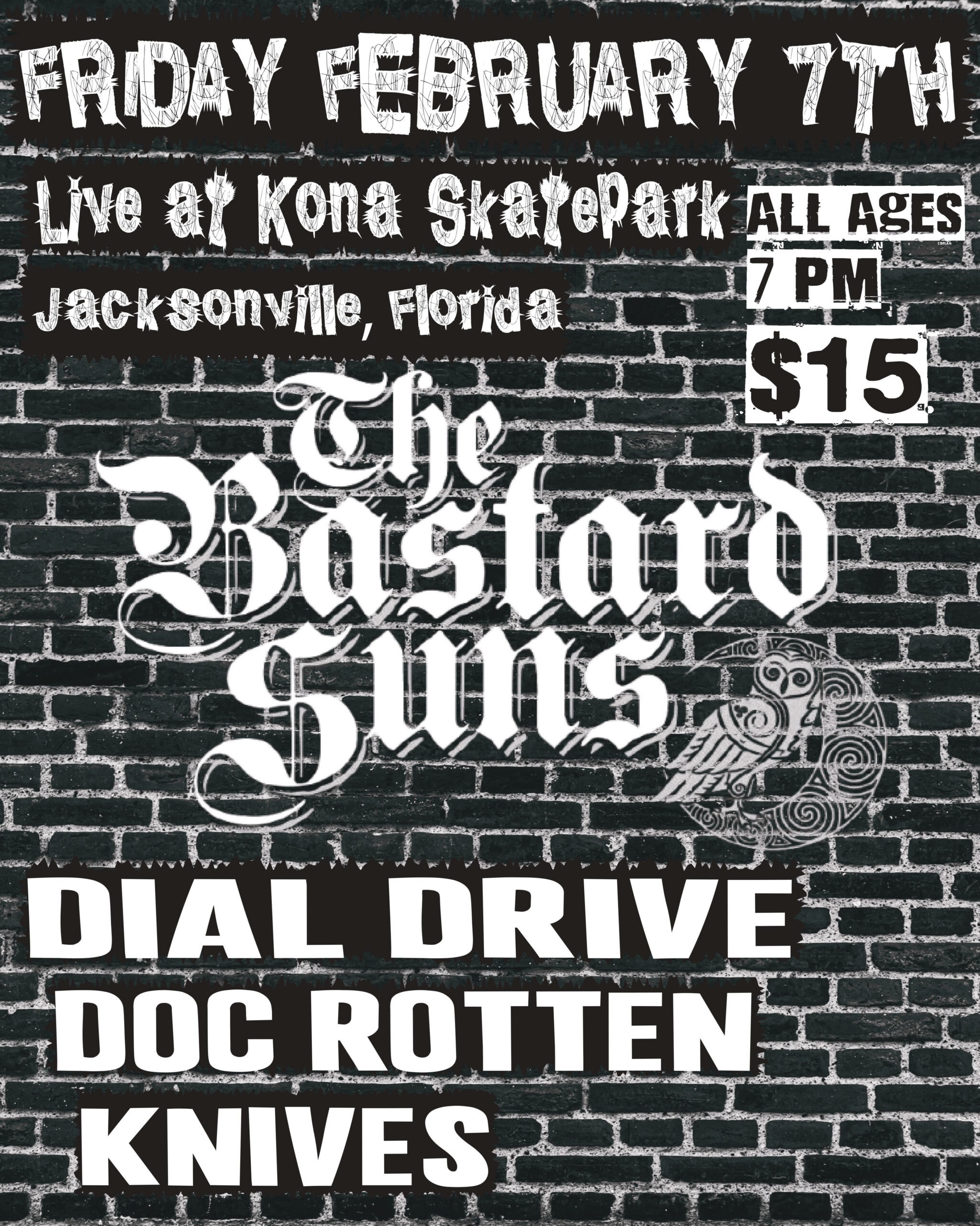 Kona Clubhouse 8739 Kona Ave, Jacksonville, FL, United StatesKona Clubhouse presents The Bastard Sons, Dial Drive, Doc Rotton, Knives! All ages, Beer and wine for adults